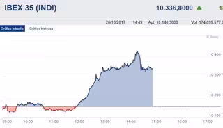 El Ibex 35 moderaba sus ganancias al 1,83%, lo que llevaba al selectivo a situarse en los 10.342,9 enteros cercanas las 15.00 horas, después de que el presidente de la Generalitat, Carles Puigdemont, haya suspendido su comparecencia en la que previsiblemente iba a anunciar su decisión de convocar elecciones anticipadas en diciembre, lo que impulsó al selectivo a registrar ganancias superiores al 2%.