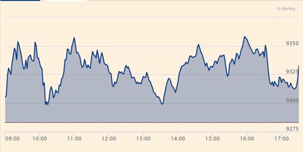 El Ibex 35 ha cerrado la sesión de este miércoles con un avance del 0,53%, lo que ha llevado al selectivo a situarse por encima de los 9.300 enteros (9.332,6) y a recuperar los niveles de enero gracias al impulso de Repsol, Aena y Santander.