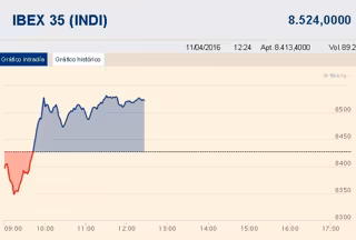 El Ibex 35 se impulsaba más de un 1% a media sesión y se alzaba por encima de los 8.500 puntos, gracias sobre todo al empuje de los bancos cotizados. Mientras, la prima de riesgo española se estabilizaba en los 142 puntos básicos.