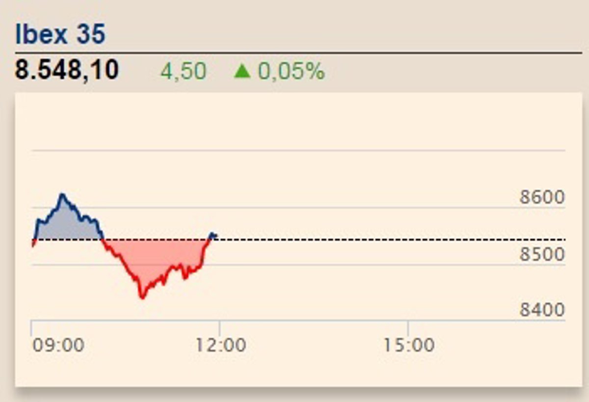 El Ibex 35 luchaba a media sesión por dejar atrás las pérdidas a media sesión pese al nuevo desplome del petróleo y se agarraba a los 8.500 puntos. Mientras, la prima de riesgo española se contenía en los 127 puntos básicos.