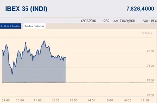 El Ibex 35 mantenía su rebote por encima del 1% a media sesión y conservaba los 7.800 puntos, gracias al impulso de los bancos y Repsol. Mientras, la prima de riesgo española permanecía a la baja y descendía hasta los 156 puntos básicos, con la rentabilidad del bono español a 10 años en el 1,77%.