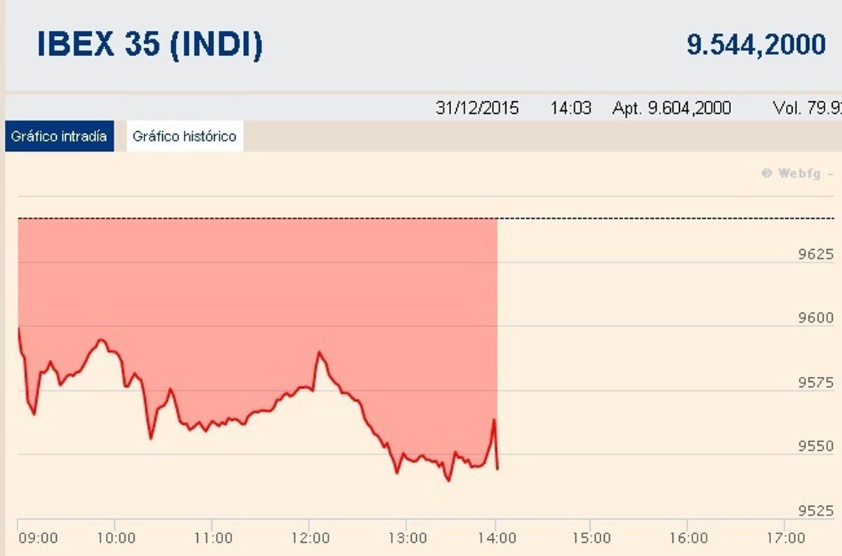 El Ibex 35 ha cerrado la última sesión del año con un recorte del 1,01%, lo que ha llevado al selectivo a situarse por debajo de la cota psicológica de los 9.600 enteros (9.544,2) y a cerrar el ejercicio con una caída del 7,15%, siendo uno de los peores índices europeos de 2015. En el mes de diciembre, el Ibex se ha dejado un 8,1%.