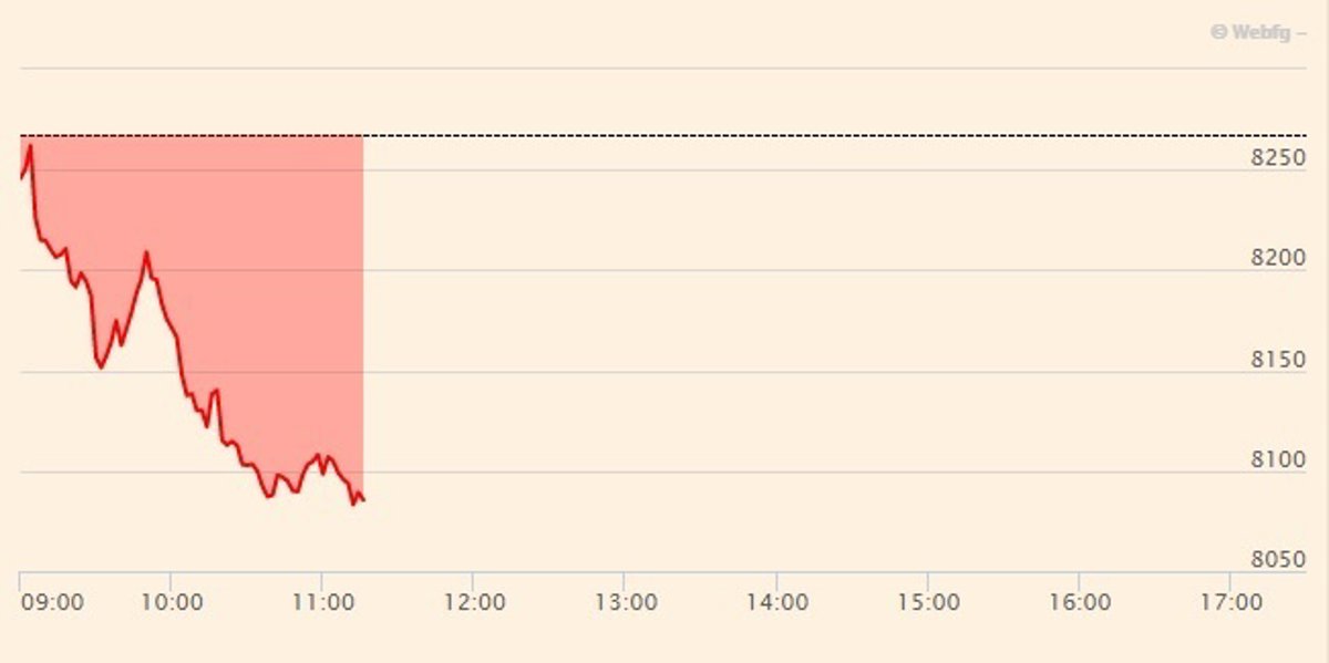 El Ibex 35 perdía el soporte de los 8.100 puntos tras dejarse más de un 2% afectado por el descenso de los precios del crudo.
