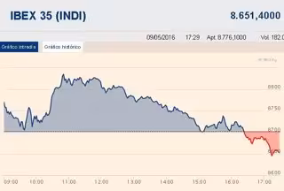 El Ibex 35 ha recaído un 0,47% al cierre de sesión y ha cedido los 8.700 puntos, lastrado por la banca y las materias primas, que difuminaban las subidas iniciales. El selectivo ha vuelto al 'rojo' tras dos sesiones seguidas en positivo.
