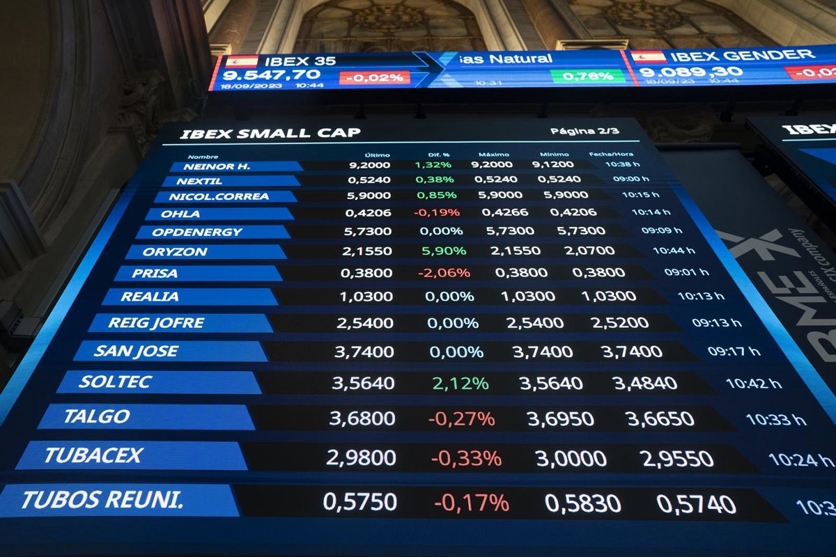 Archivo - Valores económicos en paneles en el Palacio de la Bolsa, a 18 de septiembre de 2023, en Madrid (España). - A. Pérez Meca - Europa Press - Archivo