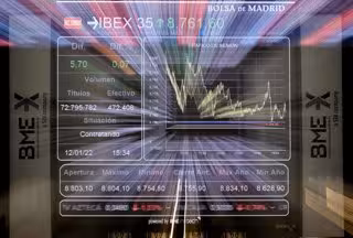 Archivo - Un panel del Ibex en el Palacio de la Bolsa, a 12 de enero de 2022, en Madrid, (España). El Ibex 35 ha iniciado la sesión de este miércoles con una subida del 0,36%, lo que ha llevado al selectivo a situarse en los 8.787 enteros, con la mayor - Eduardo Parra - Europa Press - Archivo