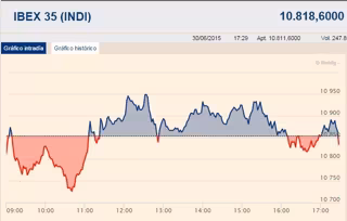 El Ibex 35 no ha logrado mantener el tipo al cierre de la sesión de este martes y ha cedido un 0,78%, lo que ha llevado al selectivo a situarse por debajo de la cota psicológica de los 10.800 enteros (10.769,5) después de que Grecia haya solicitado un tercer rescate de 29.100 millones de euros, propuesta rechaza por Alemania, y haya anunciado que no devolverá hoy al FMI el préstamo de 1.600 millones de euros que tenía pendiente.