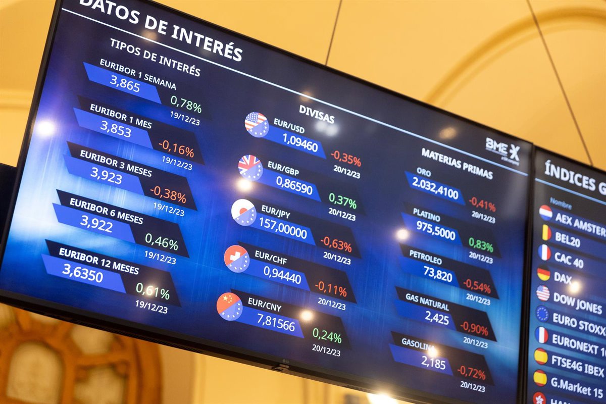 Un panel del IBEX 35 en el Palacio de la Bolsa, a 21 de diciembre de 2023, en Madrid (España). - Eduardo Parra - Europa Press