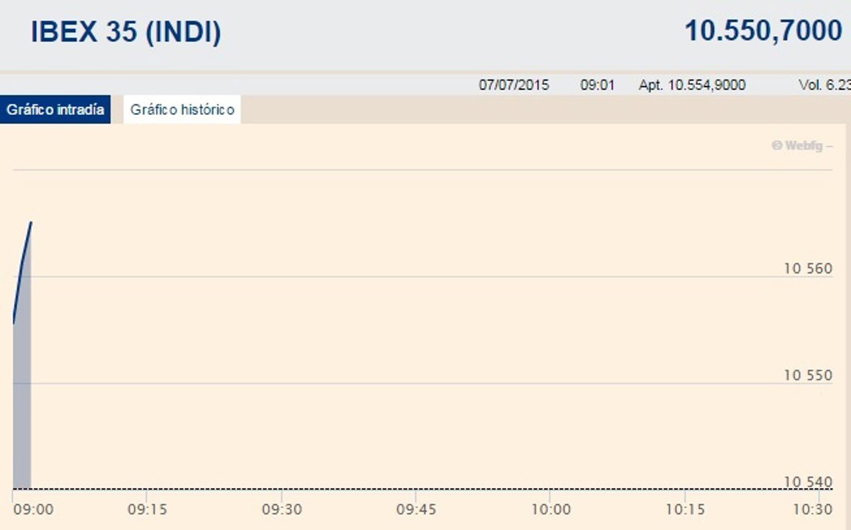 El parqué madrileño se daba este martes un respiro y subía un 0,2% en la apertura, hasta los 10.565 puntos, pendiente, otro día más, de la situación de Grecia, que dará a conocer su nueva propuesta, mientras los líderes europeos analizan si habrá un tercer rescate para el país.