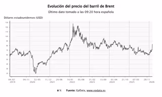 Desde el cierre del Ibex del pasado viernes, antes del ataque de Estados Unidos e Israel sobre Irán, el precio del Brent se ha disparado cerca de un 16%, mientras que el del barril WTI ha subido en torno a un 15,5%.