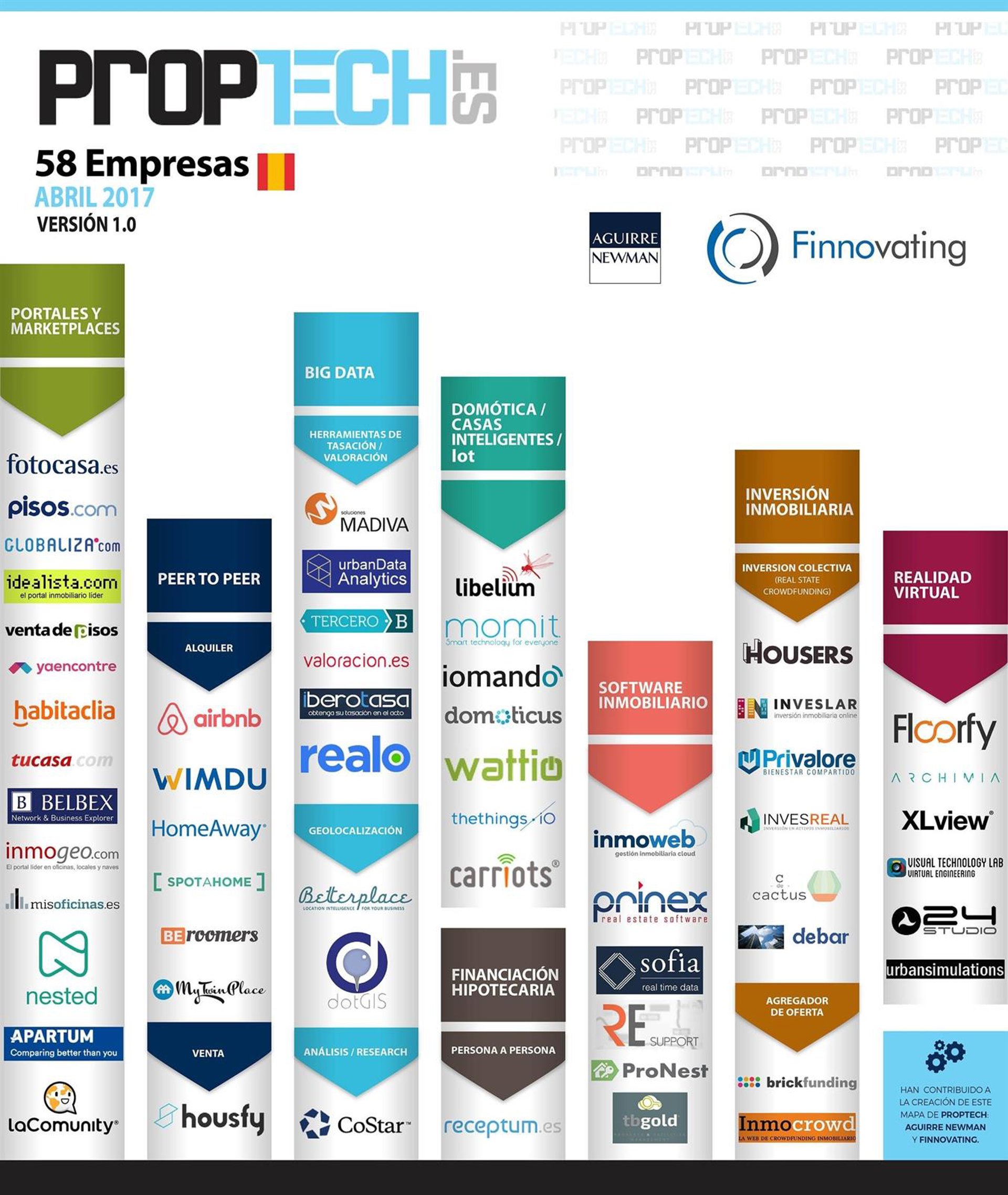 Junto con el portal Finnovating, Aguirre Newman ha establecido nueve categorías de PropTech, un concepto que aplica los nuevos modelos de negocio que han traído las nuevas tecnologías al sector inmobiliario.