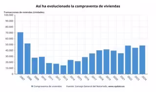 La compraventa de viviendas creció un 7,3% en enero respecto al mismo mes del año anterior, hasta las 48.517 unidades, y la concesión de préstamos hipotecarios para la adquisición de vivienda subió un 7,6% interanual, hasta las 22.452 operaciones, según datos dados a conocer este miércoles por el Consejo General del Notariado.
