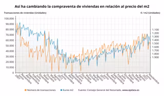 El número de compraventas de viviendas bajó un 8,2% en tasa interanual el pasado mes de noviembre, hasta alcanzar las 58.942 operaciones, mientras que el precio medio del metro cuadrado se situó en 1.570 euros, un 1,2% más que en noviembre de 2021, según datos del Consejo General del Notariado publicados este jueves.