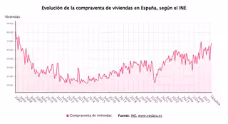 Pese al retroceso interanual de octubre, el número de compraventas de viviendas contabilizado en dicho mes es el más alto en lo transcurrido de 2025 y la mayor cifra en cualquier mes desde octubre de 2024, cuando se superaron las 69.000 compraventas, según ha informado este lunes el Instituto Nacional de Estadística (INE).