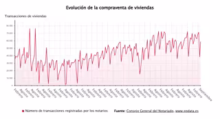 La compraventa de viviendas creció un 5% en septiembre de 2025 respecto al mismo mes del año anterior, con 58.845 unidades, y la concesión de préstamos hipotecarios para la adquisición de vivienda subió un 11,4%, hasta las 29.614 operaciones en el noveno mes del año, según datos del Consejo General del Notariado.