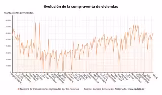 Por su parte, las compraventas de pisos aumentaron un 25,6% interanual, alcanzando las 47.604 unidades, mientras que las unifamiliares se incrementaron un 23,8% interanual, hasta llegar a las 14.079 unidades.