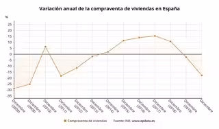 Variación anual de la compraventa de viviendas en España hasta 2020 - EPDATA