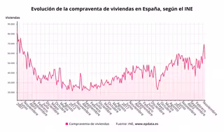 La compraventa de viviendas se disparó el pasado mes de noviembre un 15% respecto al mismo mes de 2023, hasta un total de 54.299 operaciones, su mayor cifra en este mes desde 2007, cuando se superaron las 56.000 compraventas, según ha informado este lunes el Instituto Nacional de Estadística (INE).