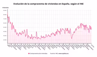 El descenso interanual de la compraventa de viviendas en junio se ha debido, principalmente, a la caída de las operaciones sobre viviendas usadas, que disminuyeron un 7,8% interanual, hasta las 39.890 operaciones. No obstante, las transacciones realizadas sobre pisos nuevos aumentaron un 0,9%, hasta las 10.209.