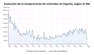 La compraventa de viviendas se desplomó un 53,7% el pasado mes de mayo en relación al mismo mes de 2019, hasta sumar 22.394 operaciones, su cifra más baja en este mes desde el inicio de la serie, en 2007, y la menor en cualquier mes desde noviembre de 2013, según ha informado este lunes el Instituto Nacional de Estadística (INE).