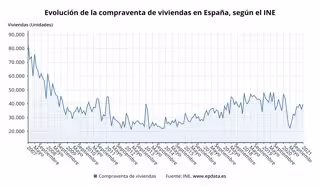 Con el retroceso interanual de enero, la compraventa de viviendas rompe con dos meses consecutivos de tasas interanuales positivas tras las subidas de noviembre (+1,9%) y diciembre (+3,7%).
