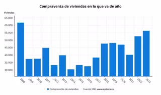 La compraventa de viviendas registró en enero un aumento del 6,6% con respecto al año anterior, hasta un total de 56.372 operaciones, la mayor cifra en un mes de enero desde el ejercicio 2008, cuando se realizaron más de 61.800 compraventas, según ha informado este martes el Instituto Nacional de Estadística (INE).