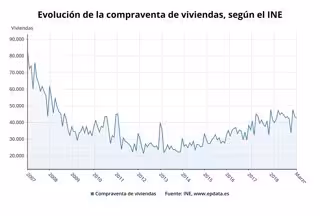 La compraventa de viviendas subió un 6,8% el pasado mes de marzo en relación al mismo mes de 2018, hasta sumar 42.649 operaciones, según ha informado este martes el Instituto Nacional de Estadística (INE).