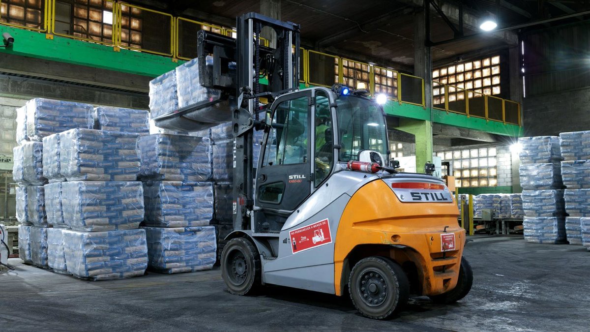 Archivo - Zona de paletizado de cemento en una nave - OFICEMEN - Archivo