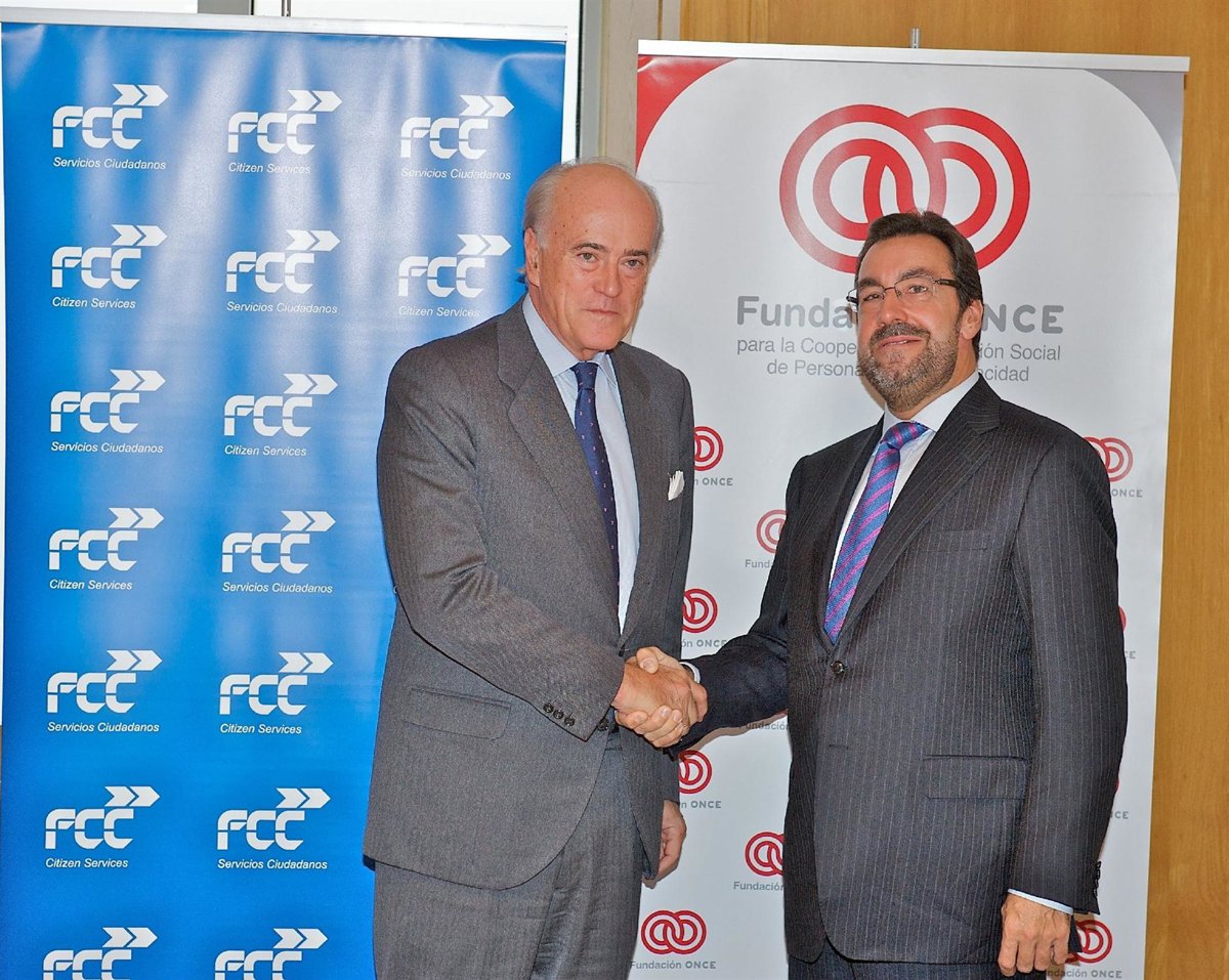 El acuerdo, impulsado por la primera accionista de FCC, Esther Koplowitz, fue suscrito por el presidente de la ONCE y de su Fundación, Miguel Carballeda, y el presidente y consejero delegado de FCC, Baldomero Falcones, según informa la compañía.