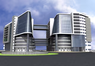 En concreto, el proyecto consta de una superficie total construida de 44.000 metros cuadrados distribuidos en dos edificios (uno de 10 plantas de altura y otro de 9) unidos por dos pasarelas, un helipuerto en la cubierta y un sótano común donde se encuentran 111 plazas de aparcamiento y las instalaciones técnicas y de seguridad y vigilancia.