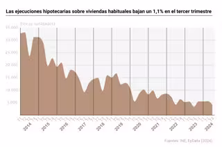 El número de ejecuciones hipotecarias sobre viviendas habituales se situó en 1.718 entre julio y septiembre, cifra un 1,1% inferior a la del mismo periodo de 2023 y la más baja en un tercer trimestre desde 2019, según la estadística de ejecuciones hipotecarias publicada este jueves por el Instituto Nacional de Estadística (INE).