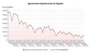 Durante el cuarto trimestre de 2023 se registraron 2.287 ejecuciones hipotecarias sobre viviendas habituales, la cifra más baja en un cuarto trimestre desde 2019. Suponen un 32,9% más que en el trimestre anterior, pero un 24,8% menos que en el cuarto trimestre de 2022.