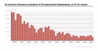 El número de ejecuciones hipotecarias sobre viviendas habituales se situó en 2.066 en el tercer trimestre del año, recórd para un tercer trimestre desde 2021 y un 19,3% superior a la del mismo periodo de 2024. No obstante, esta cifra es casi un 29% inferior a la del trimestre anterior, según la estadística de ejecuciones hipotecarias publicada este viernes por el Instituto Nacional de Estadística (INE).