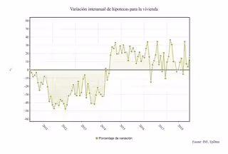 Con este repunte interanual, la firma de hipotecas sobre viviendas encadena cuatro meses de tasas positivas y amplía el aumento que registró en junio, que fue del 3,9%.