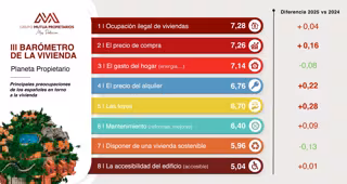 Entre las principales preocupaciones señaladas por los españoles en el barómetro, el aumento significativo por el 'precio del alquiler' (+0,22) y 'el precio de compra' (+0,16) consolidan el 'acceso a la vivienda' como una de las inquietudes más agudas de los españoles.