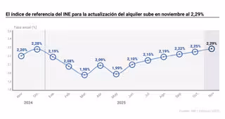 El Instituto Nacional de Estadística (INE) ha publicado este viernes el índice de referencia para la actualización anual de los contratos de alquiler, que se situó en el 2,29% interanual en octubre, su valor más alto desde el inicio de la serie, en noviembre de 2024.