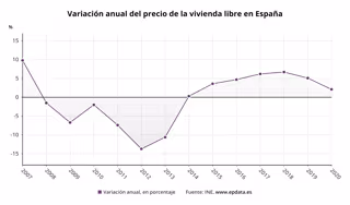 El precio de la vivienda libre subió una media del 2,1% en 2020 respecto al año anterior, registrando así su séptimo repunte anual consecutivo y el menos pronunciado desde el ejercicio 2014, cuando el precio apenas se incrementó un 0,3%, según el Índice de Precios de Vivienda (IPV) del Instituto Nacional de Estadística (INE) publicado este martes.
