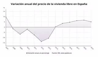 No fue hasta 2014 cuando el precio de la vivienda libre volvió a tasas positivas, con un repunte anual medio del 0,3%, que en 2015 se aceleró hasta el 3,6%, en 2016 hasta el 4,7%, en 2017 hasta el 6,2% y en 2018 hasta el 6,7%. Esa tendencia de aceleración se rompió en 2019 cuando el precio se moderó respecto al año anterior.