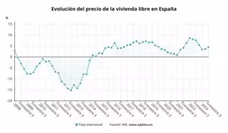 Con el repunte del tercer trimestre, nueve décimas superior al del trimestre anterior, el precio de la vivienda libre acumula ya 38 trimestres de incrementos interanuales.