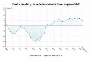 El precio medio de la vivienda libre subió un 4,7% interanual en el tercer trimestre del año, tasa seis décimas inferior a la del trimestre anterior y la más moderada desde el cuarto trimestre de 2016, cuando los precios avanzaron un 4,5%, según el Índice de Precios de Vivienda (IPV) del Instituto Nacional de Estadística (INE) publicado este viernes.