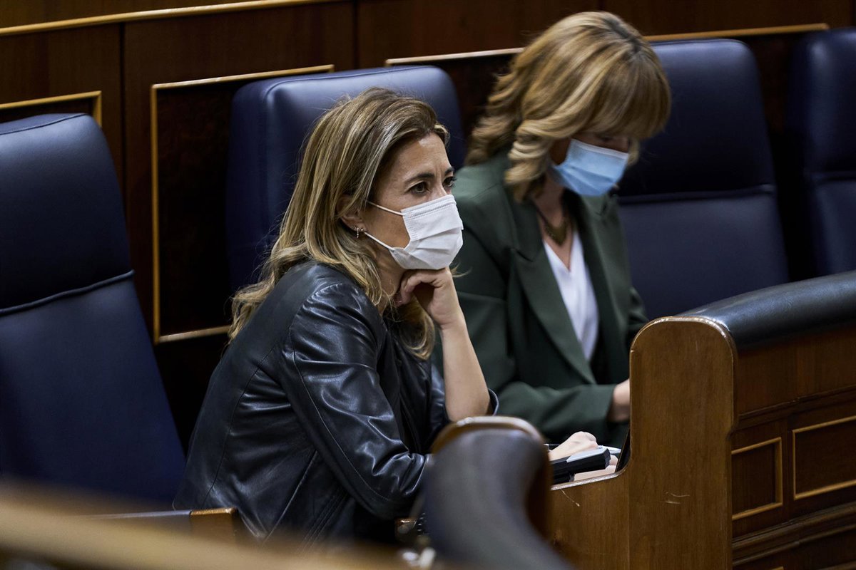 Archivo - La ministra de Transportes, Movilidad y Agenda Urbana, Raquel Sánchez (i) y la ministra de Educación, Pilar Alegría, en una sesión plenaria en el Congreso - A. Pérez Meca - Europa Press - Archivo