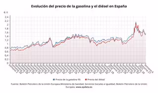Además, ambos carburantes continúan lejos de los máximos que registraron el verano de 2022, en julio, cuando la gasolina alcanzó los 2,141 euros y el gasóleo los 2,1 euros.