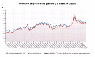 Con estos niveles, el precio de la gasolina sin plomo de 95 se mantiene en España por debajo de la media de la Unión Europea, situada en 1,611 euros el litro, y de la eurozona, con un precio medio de 1,689 euros.