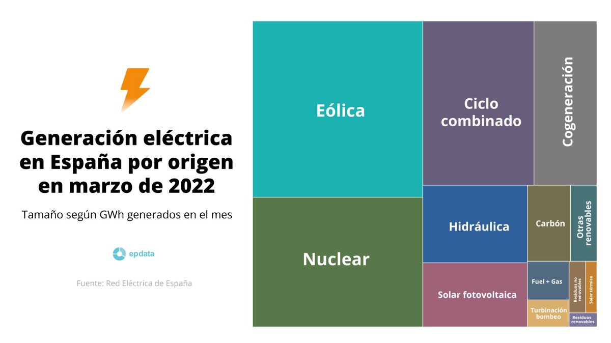 En el mes de marzo, y según datos estimados a día de hoy, la generación procedente de fuentes de energía renovable representó el 45,4% de la producción. El 67% de la producción eléctrica procedió de tecnologías que no emiten CO2 equivalente.