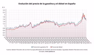 Con estos niveles de precios, ambos carburantes se mantienen lejos de los máximos que tocaron el pasado verano, cuando en julio la gasolina alcanzó los 2,141 euros y el gasóleo los 2,1 euros.