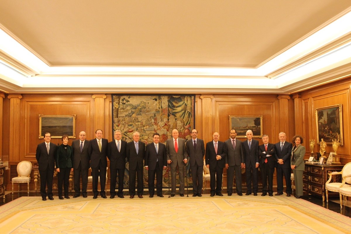 El rey Juan Carlos I ha recibido este viernes en audiencia en el Palacio de la Zarzuela al consejo de administración de Enagás, con motivo del cuarenta aniversario de la compañía y el décimo desde el inicio de su cotización en Bolsa.