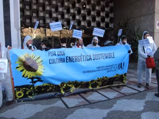 El motivo de la concentración ha sido "mostrar que la sociedad civil rechaza esta práctica porque contribuye al cambio climático, tiene un gravísimo impacto ambiental, contamina los acuíferos y pone en peligro la vida de las poblaciones cercanas", explica la plataforma en una nota.