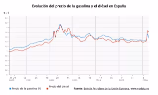 No obstante, ambos carburantes se mantienen todavía lejos de los máximos que registraron el verano de 2022, en julio, cuando la gasolina alcanzó los 2,141 euros y el gasóleo los 2,1 euros.
