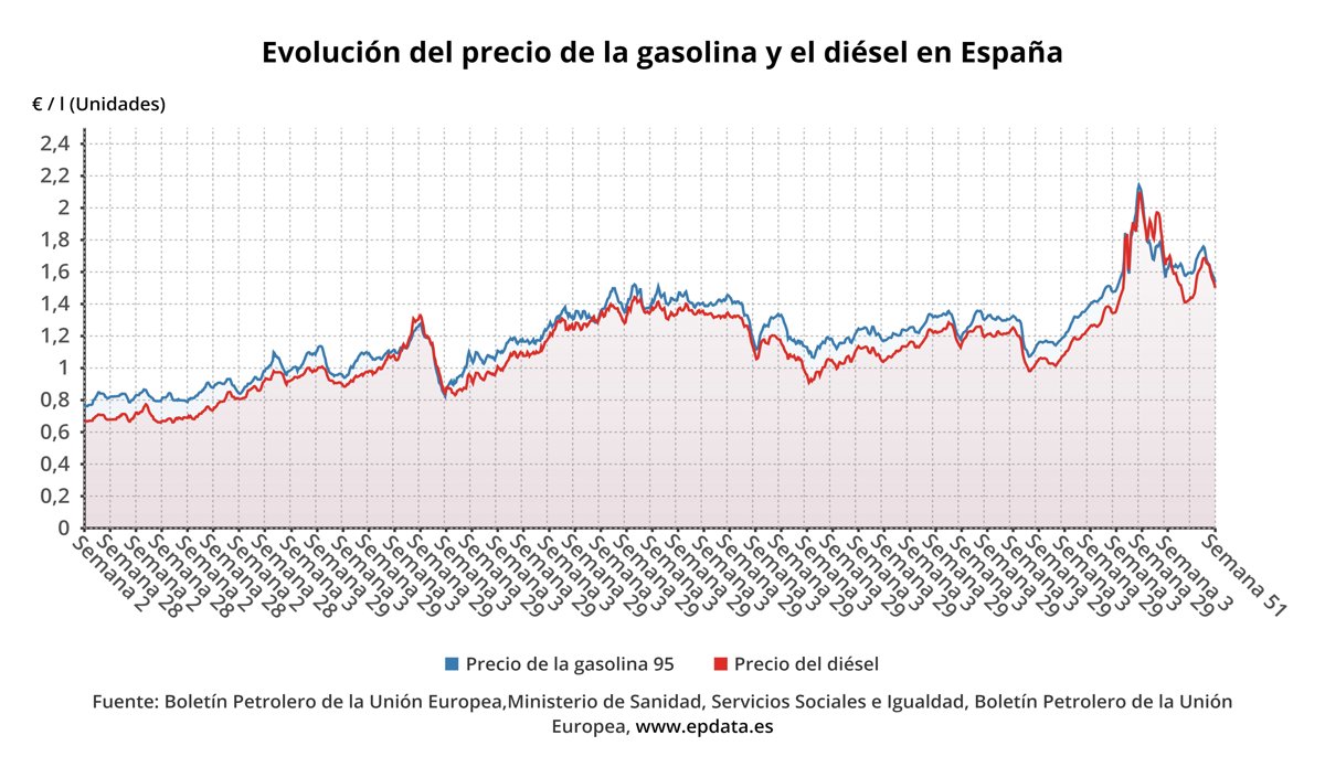 El año pasado, debido a la escalada en el precio de los carburantes a causa de la crisis energética provocada por el conflicto bélico, estaba vigente la bonificación mínima de 20 céntimos por litro de combustible para todos los ciudadanos aprobada por el Gobierno dentro de su plan de respuesta al impacto de la guerra en Ucrania.