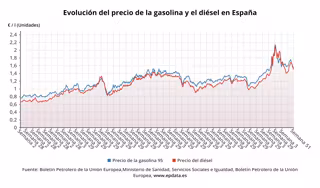 Con esta espiral bajista, el precio del litro de gasolina se mantiene por debajo de los niveles en los que se situaba antes del estallido de la invasión rusa de Ucrania -1,592 euros por litro-, que comenzó el 24 de febrero de 2022. En el caso del gasóleo se mantiene todavía por encima del precio de entonces -1,479 euros por litro-.